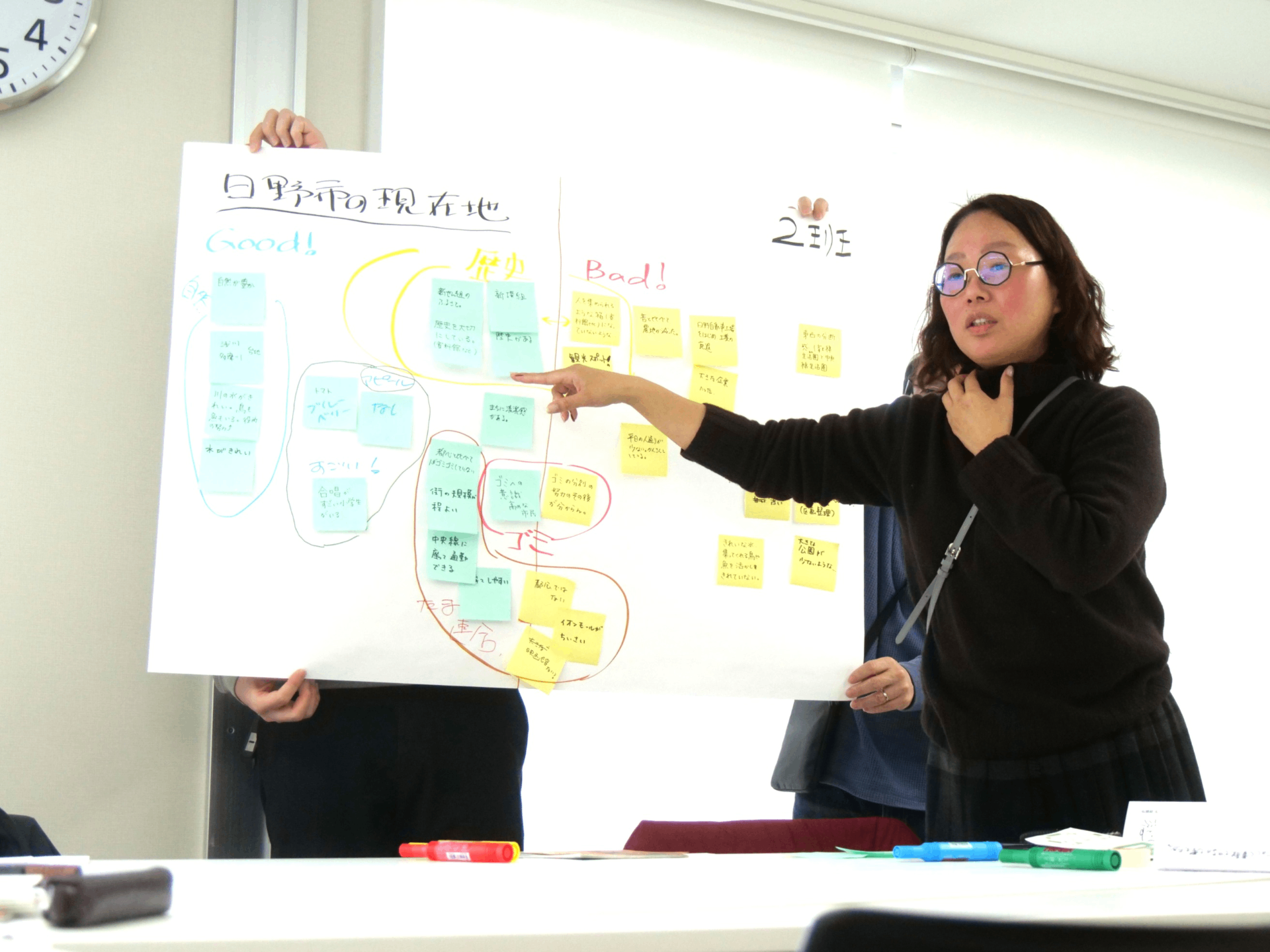 ・グループワーク①「日常生活を通して感じる、日野市の良いところ/改善点をあげてみよう!」