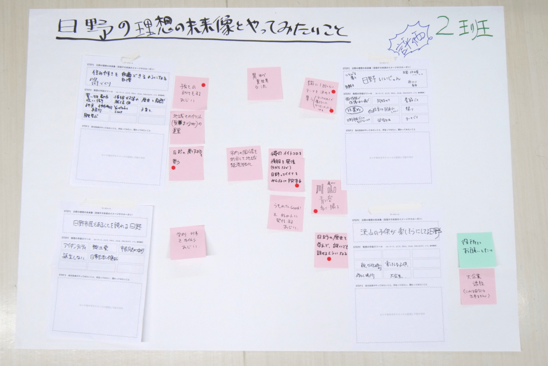 ・グループワーク②「日野の理想の未来像と自分自身がやってみたいことを考えてみよう!」